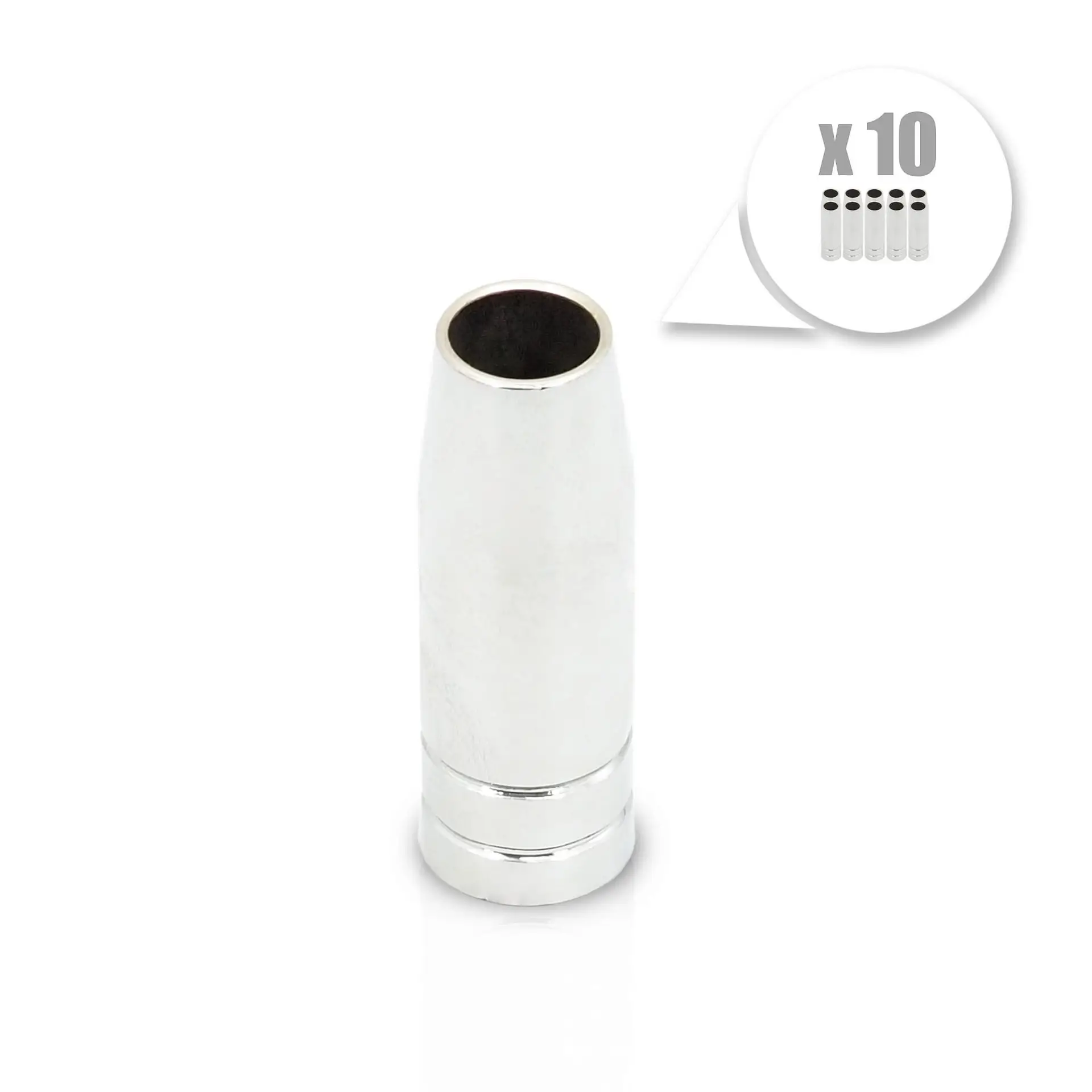 Dieses Set enthält 10 Stück Schweißbrennerdüsen MB-15 TW-15, die für MIG/MAG-Schweißbrenner im Standard MB-15, TW-15, LG-15, LGS-15, DWM-15 geeignet sind. Diese Düsen sind für den ordnungsgemäßen Betrieb des Schweißgeräts unerlässlich und ermöglichen präzises und effektives Schweißen.