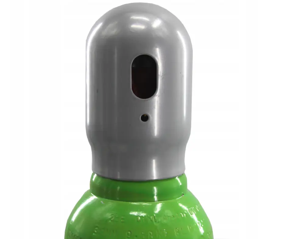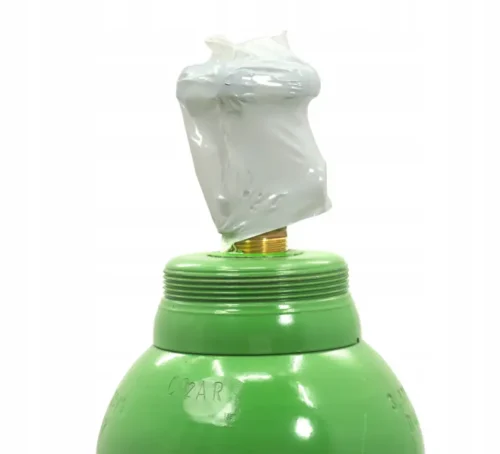 Die Schutzkappe schützt das Ventil während des Transports oder der Lagerung vor Beschädigungen. Die Flasche ist voll, fabrikneu und hat einen Betriebsdruck von 150 bar. Sie besitzt eine TÜV-Zulassung von 10 Jahren, entspricht der Norm EN-1964-1 und ist mit dem Π-Zeichen versehen, was eine Nutzung und Befüllung in allen EU-Ländern erlaubt.