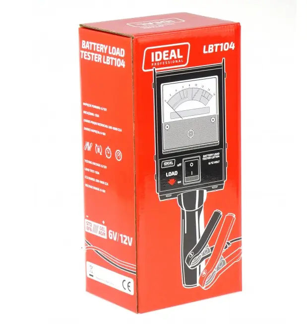 Der Batterietester Ideal LBT104 ist für die schnelle Prüfung von Starterbatterien konzipiert. Er ermöglicht die Messung der Spannung unter Belastung im Bereich von 6/12V. Er ist das ideale Werkzeug zur Überprüfung des Zustands von Blei-Säure-Batterien, Gel-Batterien und AGM MF-Batterien. Mit diesem Tester kann der Zustand der Batterie schnell und einfach bewertet werden.