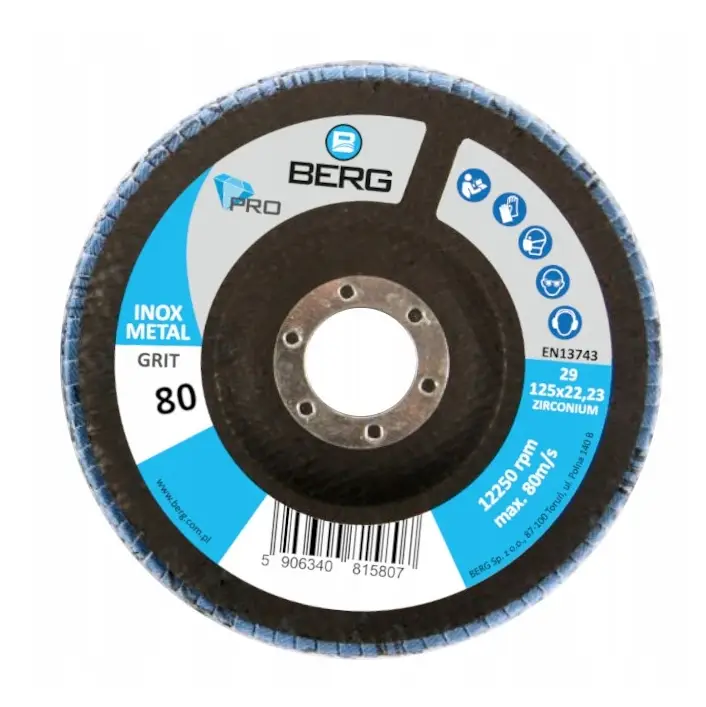 BERG SCHLEIFSCHEIBE PRO INOX KORN 80 125×22 ZIRKON