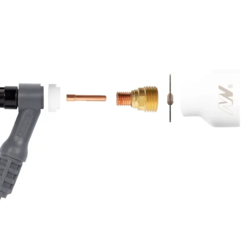Das CUPSYSTEM SR 9/20 Set ist ein komplettes Schutzgas-Set für das TIG-Schweißen mit Gleichstrom (DC). Es wurde für das Schweißen von Edelstahl, Titan, Inconel® und anderen Metallen an schwer zugänglichen Stellen entwickelt. Das Set enthält eine Gasdüse, ein Sieb, eine Linse, eine Spannhülse, einen Isolator und einen Satz zur Auswahl einer Elektrode mit einem Durchmesser von 1,6 mm oder 2,4 mm. Der Preis gilt für ein CUPSYSTEM-Set.