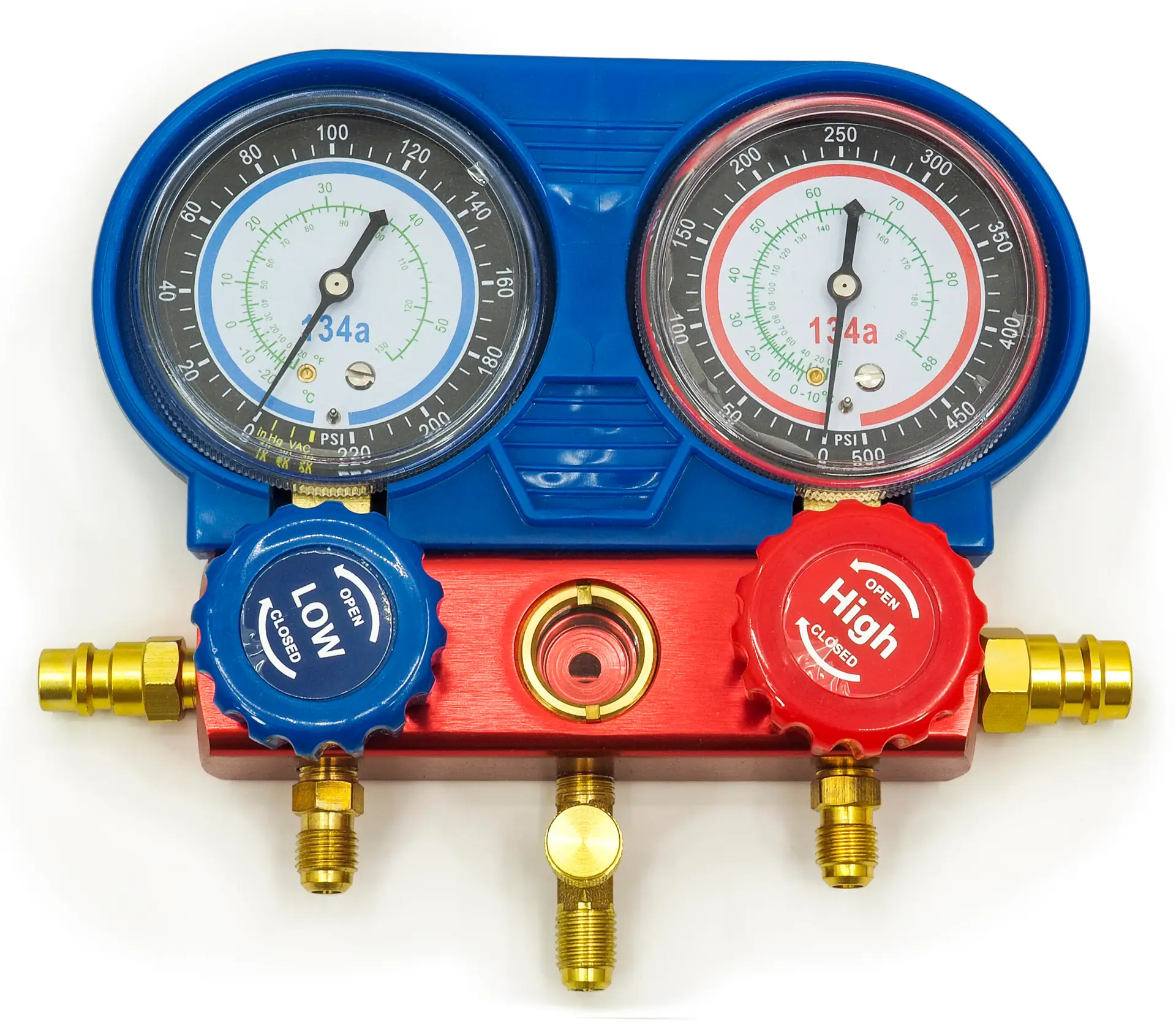 - Manometer-Tester für Klimaanlagen R134A / R410A / R22 mit Schläuchen
