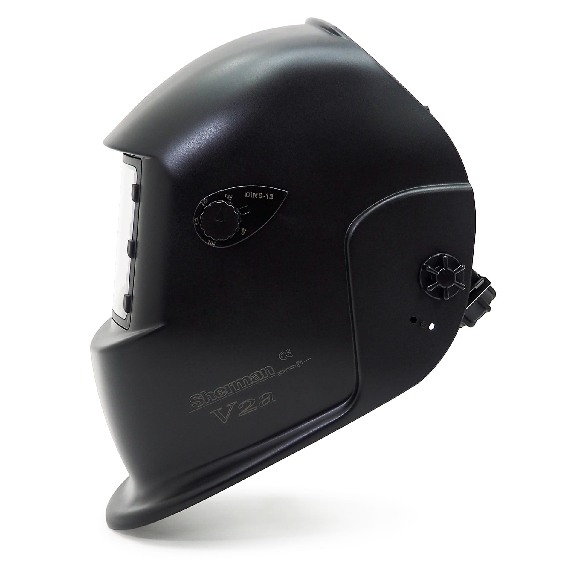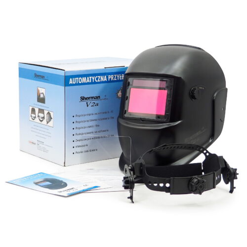 Die selbstabdunkelnde Schweißmaske Sherman-profi V2a ist eine erweiterte und modernisierte Version des Modells Sherman-profi V2. Sie dient zum Schutz der Augen und des Gesichts vor Funken, Spritzern und schädlicher Strahlung während des Schweißens und Schleifens. Der automatische Abdunkelungsfilter wechselt nach dem Zünden des Lichtbogens automatisch von hell auf dunkel und wird nach dem Schweißen wieder hell. Die Sherman-profi V2a-Maske kann den Abdunklungsgrad von 9 bis 13 nach DIN einstellen. Sie verfügt über ein externes Einstellrad, mit dem die Empfindlichkeit der Fotodetektoren auf die Lichtbogenintensität beim Schweißen mit MIG- oder TIG-Verfahren stufenlos eingestellt werden kann. Sie hat auch eine zweistufige Einstellung der Verzögerungszeit für den Wechsel zwischen dunkel/hell im Bereich von 0,25 – 0,8 s. Bei Auswahl der Schleiffunktion auf dem internen Bedienfeld wechselt der Abdunklungsfilter in den hellen Zustand ohne die Möglichkeit der Abdunklungsregelung. Die Maske hat eine CE-Zertifizierung, die vom CIOP in Warschau ausgestellt wurde.