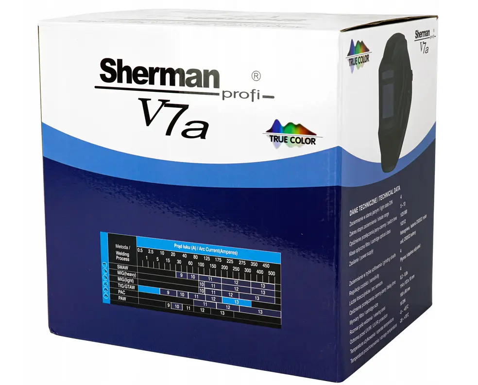Die selbstabdunkelnde Schweißmaske Sherman-profi V7a ist eine automatische Schweißmaske, die den Augen und dem Gesicht Schutz vor Funken, Spritzern und schädlicher Strahlung beim Elektroschweißen, Löten, Hartlöten und Schleifen bietet.