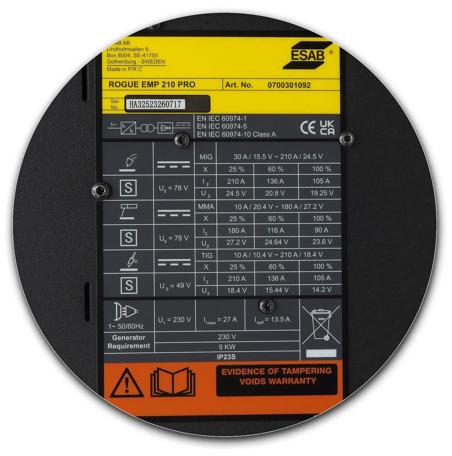 ESAB Rogue™ EMP 210 PRO 230V 210A
