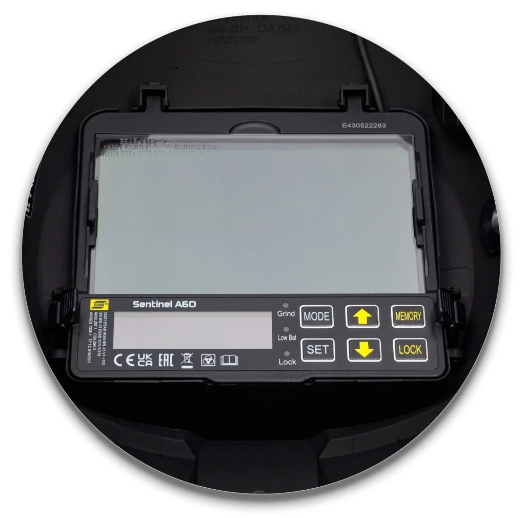 Der Schweißhelm Sentinel A60 bietet eine großartige Panoramasicht und höchste Klassifizierung der optischen Klasse von 1/1/1/1 EN. Der überarbeitete ADF (Auto-Darkening-Filter) ist mit der neuen OpTCS(TM)-Technologie