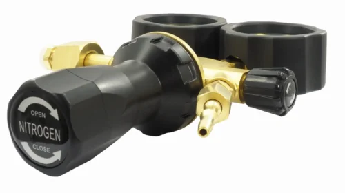 Robuster Druckminderer für Stickstoff (N₂), entwickelt für industrielle Anwendungen, bei denen ein präziser und stabiler Ausgangsdruck bis zu 50 bar erforderlich ist.