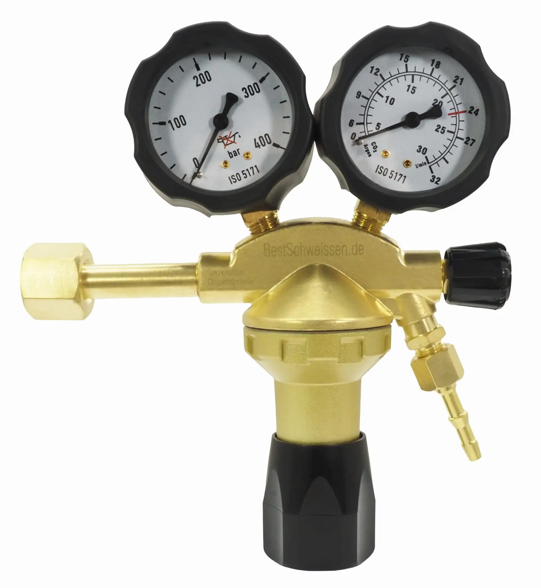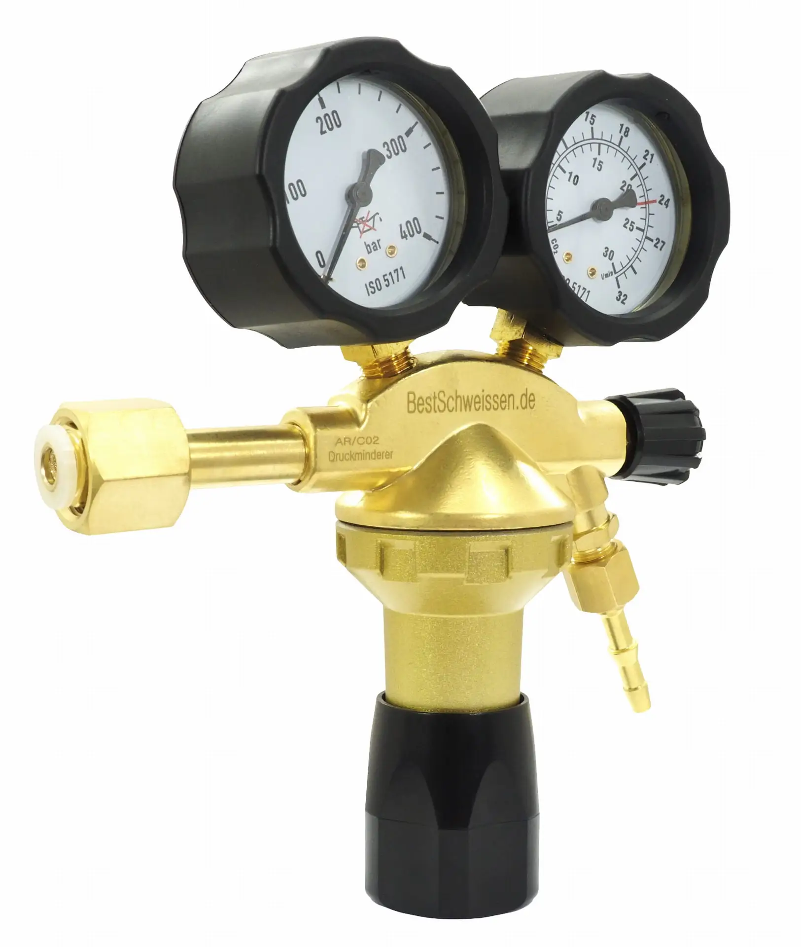 Passendes Anschlussgewinde: Kompatibel mit Gasflaschen für Argon, CO₂ oder Ar/CO₂-Mischungen, einfache Montage.