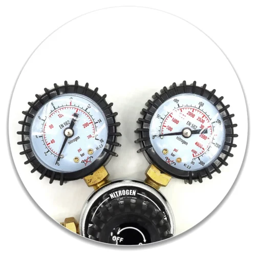 Der REDUKTOR Mouse ist ein solider Reduktor für Stickstoff in Druckgasflaschen mit einem maximalen Fülldruck von 200 bar. Der maximale Ausgangsdruck beträgt 10 bar. Der Reduktor verfügt über eine Gummischutzhülle für die Manometer sowie ein Reduktionsventil, das den Druck am Ausgang der Druckgasflasche auf den erforderlichen Betriebsdruck senkt und konstant hält. Das Gewinde des Reduktors passt auf Stickstoffflaschen. Der Reduktor ist mit einem Manometer zur Anzeige des Gasdrucks in der Flasche sowie einem Manometer zur Anzeige des Betriebsdrucks am Ausgang ausgestattet.