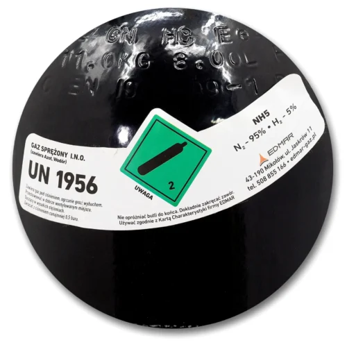 Die Wasserstoffgasflasche HYDROGEN NH5 200 BAR 8l Klimaanlage ist eine fabrikneue Flasche mit einem Fassungsvermögen von 8 Litern Wasserstoff, einer Mischung aus 95% Stickstoff und 5% Wasserstoff. Sie ist für die Überprüfung der Dichtheit verschiedener Ventile und Klimaanlagen vorgesehen. Die Flasche ist mit einer Schutzkappe ausgestattet, die das Ventil während des Transports oder der Lagerung vor Beschädigungen schützt. Sie hat einen Betriebsdruck von 200 bar, was eine 30% höhere Gasbefüllung im Vergleich zu anderen Flaschen mit einem Betriebsdruck von 150 bar ermöglicht. Die Flasche und das Ventil entsprechen der Norm EN 1964:1999 und tragen das Konformitätszeichen π (Pi) gemäß den Anforderungen der ADR/RID. Die Flasche kann bis zu 10 Jahre nach dem Legalisierungsdatum wiederbefüllt werden.