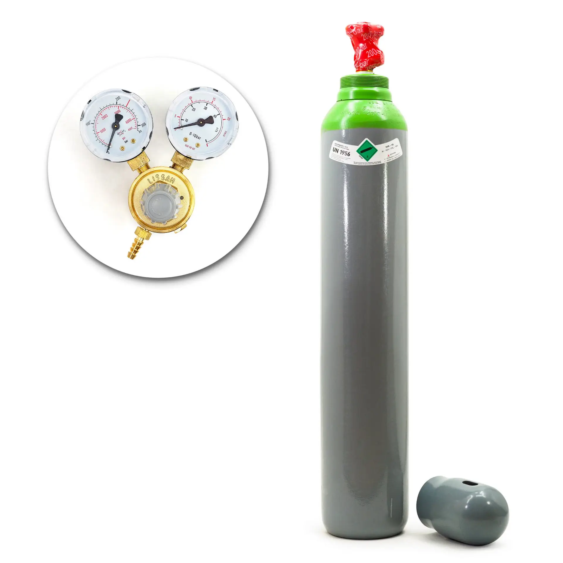 Gasflasche MIX 10l ARGON/CO2 + Mini-Druckminderer Ar / CO2