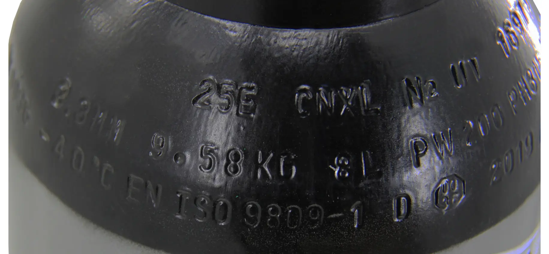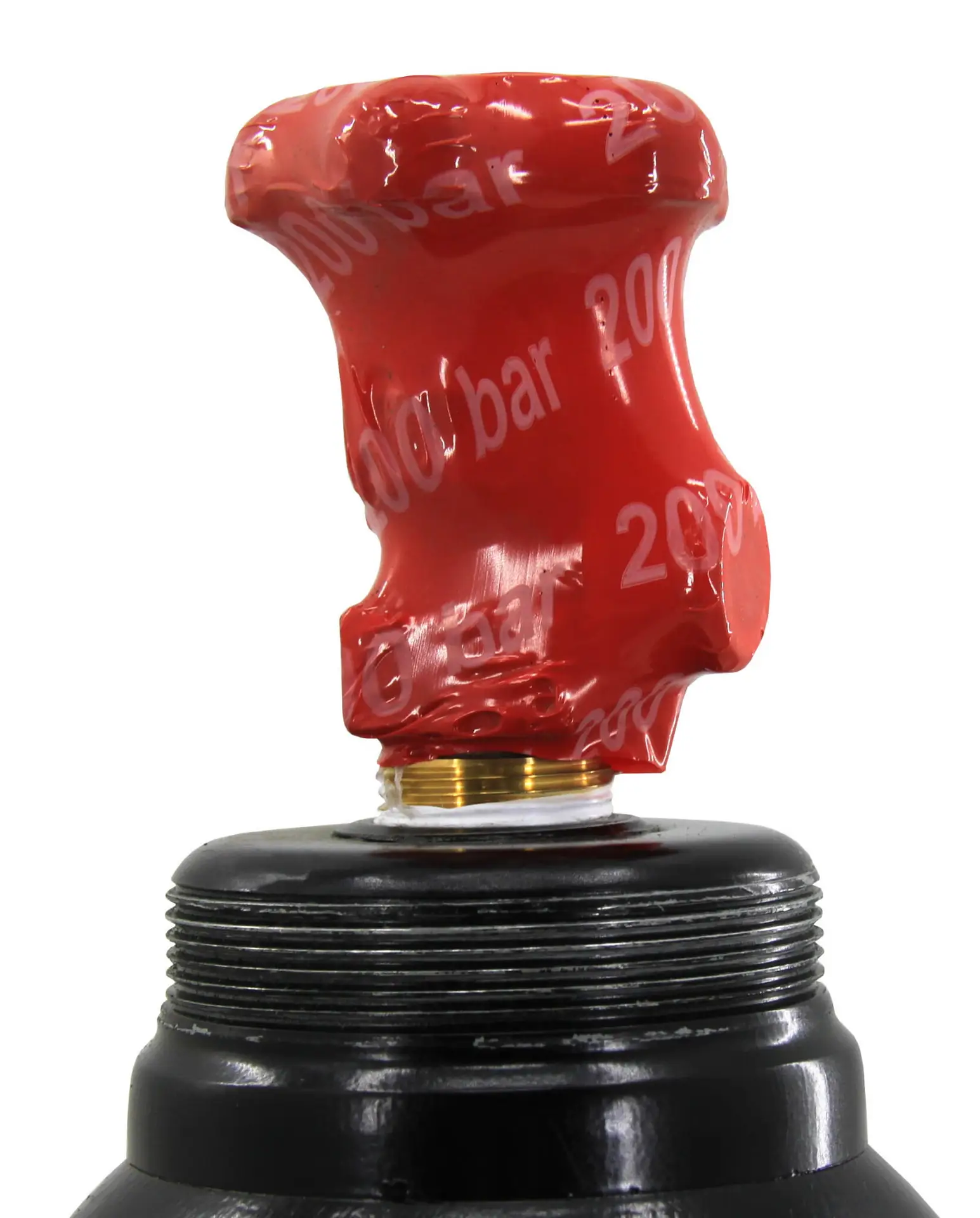 Die Schutzkappe schützt das Ventil vor Beschädigungen beim Transport oder bei der Lagerung. Die Flasche ist fabrikneu und verfügt über einen Betriebsdruck von 200 bar.