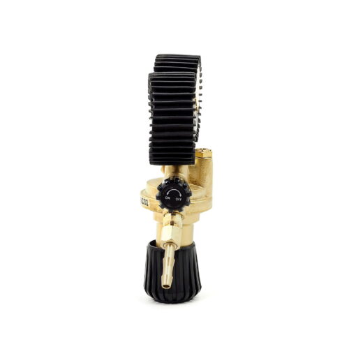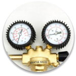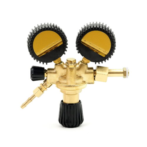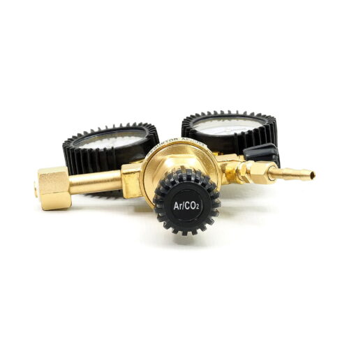 Der Argon/CO2 Flaschenregler mit zwei Manometern ist ein Druckminderer, der für komprimierte Gase oder in Druckflaschen gelöste Gase mit einem Fülldruck von maximal 300 bar sowie für verflüssigte Gase bestimmt ist. Es handelt sich um ein zuverlässiges Gerät, das den Druck am Auslass der Druckflasche auf den erforderlichen Arbeitsdruck senkt und diesen konstant hält. Dieser Druckminderer darf nicht für flüssige Gase verwendet werden.