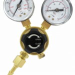 Flaschendruckminderer für Argon / CO₂ mit zwei Manometern. Ideal geeignet für kleinere Schweißgeräte. Seine Aufgabe besteht darin, den Druck des direkt aus der Gasflasche entnommenen Gases auf den erforderlichen Arbeitsdruck zu reduzieren.