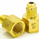 Universaladapter aus Messing zur Verbindung eines Stickstoff-Druckminderers mit einem 1/4″ SAE Kältemittelschlauch.