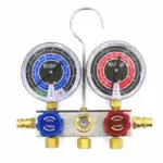 Beide Manometer sind justierbar. Die Skalen zeigen Temperatur und Druck sowie weitere Kältemittelskalen. Austauschbare Kolbenventile sorgen für perfekte Dichtung.