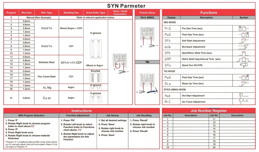 • Speichert Schweißparameter je Material und Gasart – spart Zeit bei Wechseln