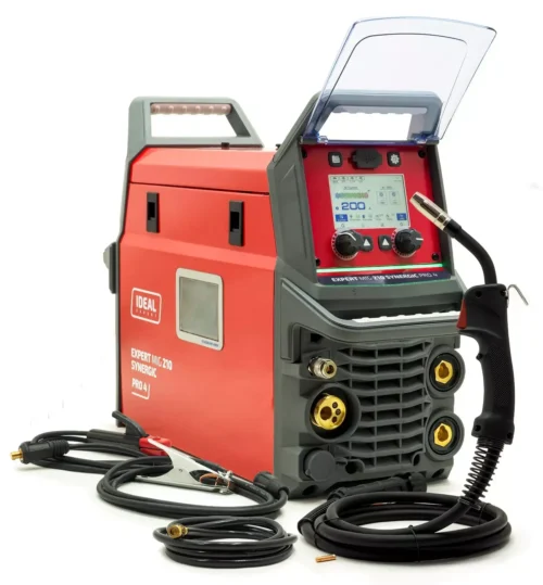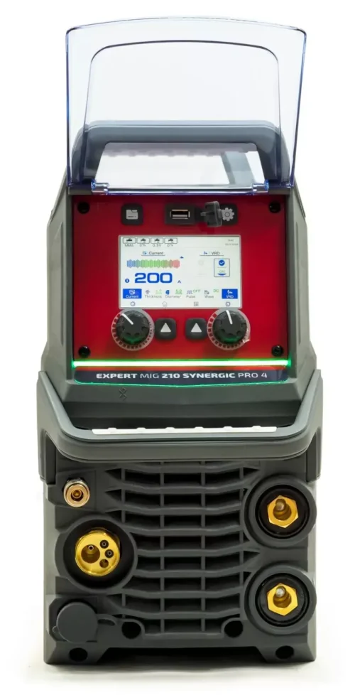 Die EXPERT MIG 210 SYNERGIC Pro4 LCD ist eine synergetische und multifunktionale Inverter-Schweißquelle, die für das MIG/MAG-, FLUX-, TIG LIFT- und MMA-Schweißen (umhüllte Elektrode) entwickelt wurde. Das Gerät wurde für ein breites Anwendungsspektrum konzipiert: von Wartungsarbeiten über das Schweißen von Stahlkonstruktionen bis hin zu Karosseriereparaturen.
