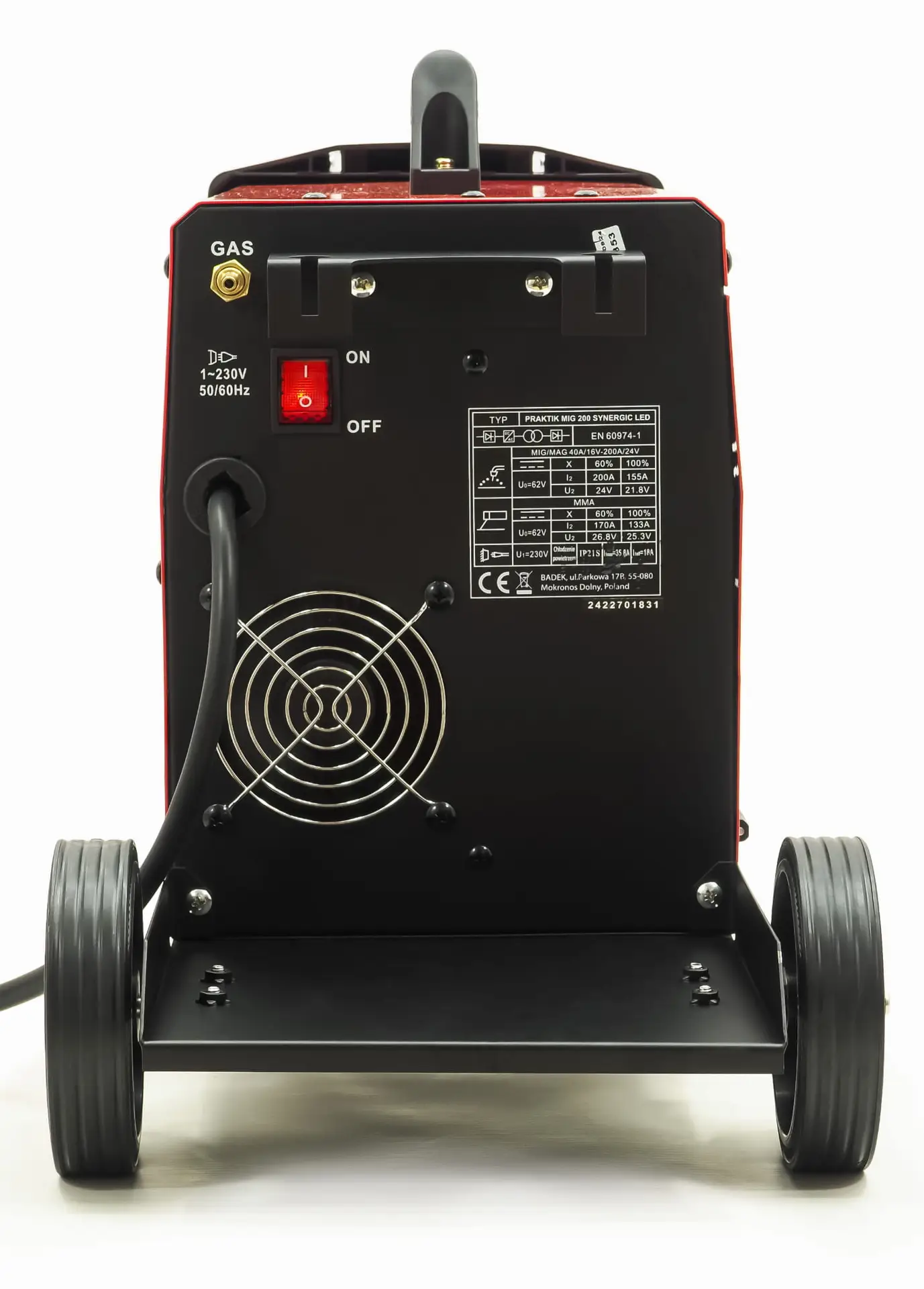 Das PRAKTIK MIG 200 SYNERGIC LED ist ein synergischer Inverter-Schweißautomat für Lichtbogenschweißen mit den Verfahren MIG/MAG, FLUX, MMA und TIG-Lift.