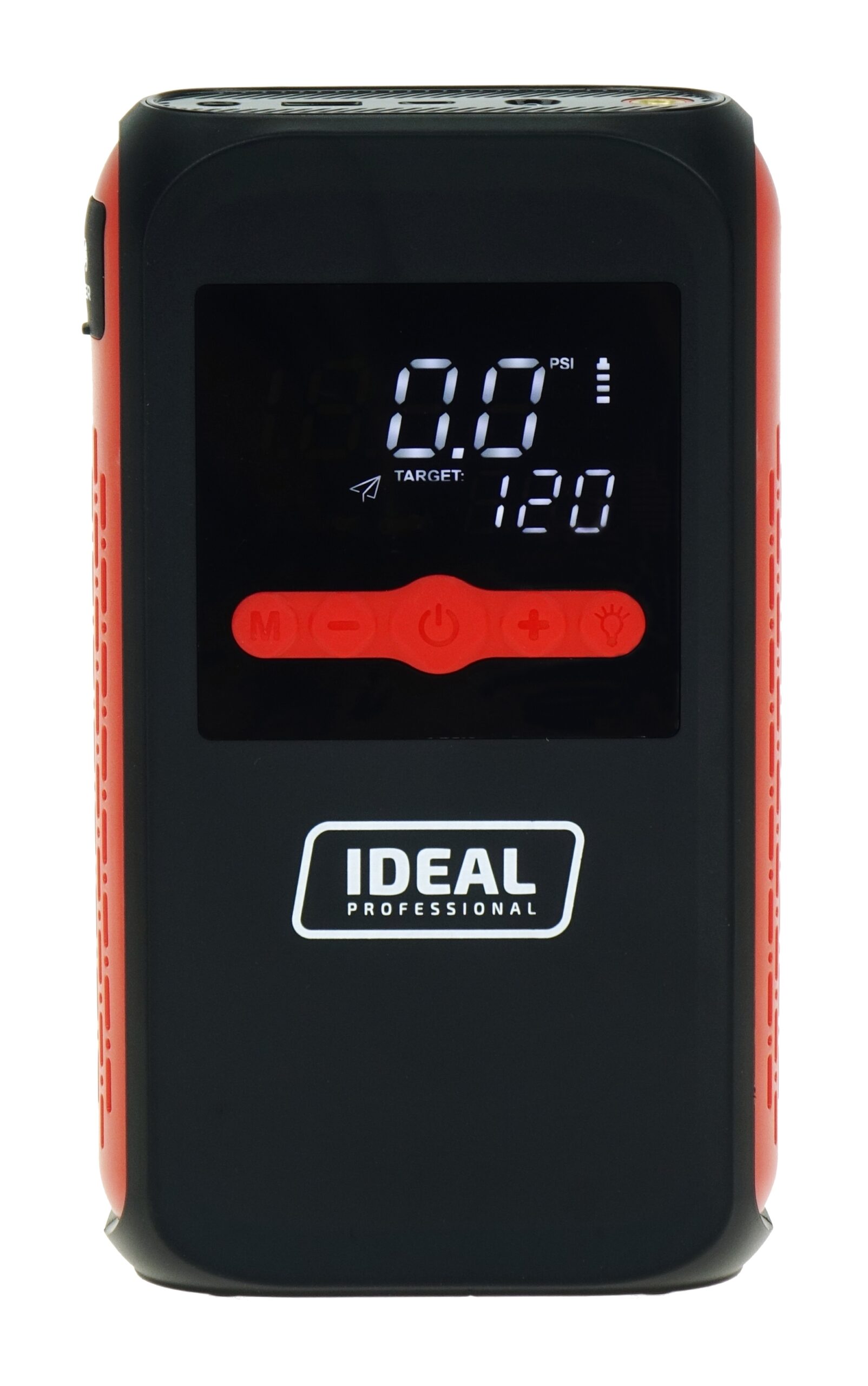 Der eingebaute Kompressor ermöglicht das Aufpumpen in 5 Leistungsstufen bis zu einem maximalen Druck von 120 PSI.