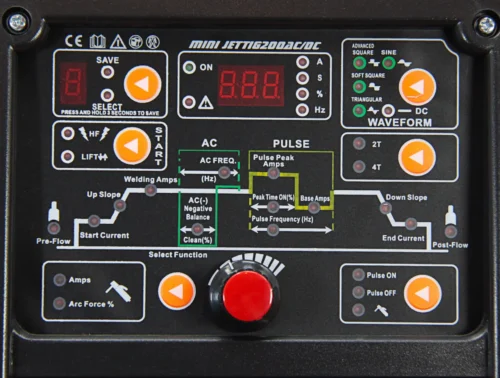 Das Inverter-Schweißgerät MINI JET TIG 200 AC/DC IGBT ist ein industrielles, inverterbasiertes Schweißgerät, das auf der IGBT-Technologie basiert. Es ist für das Schweißen verschiedener Arten von Stahl, Kupfer, Messing, Magnesium, Titan und allen Aluminiumlegierungen geeignet. Ausgestattet mit einem PFC-Modul (Power Factor Correction), das den Leistungsfaktor auf einen Wert nahe 1 erhöht, werden Verluste in industriellen Leitungen minimiert. Das MINI JET TIG 200 AC/DC IGBT Schweißgerät ist ein Gerät der Spitzenklasse, das neue Standards unter den AC/DC-Schweißmaschinen setzt. Es verfügt über ein benutzerfreundliches Bedienfeld, das die Auswahl aller erforderlichen Arbeitsparameter ermöglicht.
