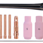 Zündung durch Berühren des Werkstücks. Der Lichtbogen wird unter Schutzgas (Argon) zwischen Wolframelektrode und Werkstück gezündet.