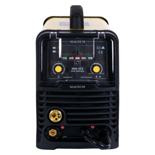 MIG 203 EASY SYNERGIA der Marke MAGNUM ist ein technologisch fortschrittliches Schweißgerät mit einer vollständig einfachen SYNERGIE-Funktion! Das Gerät wurde für schnelles und einfaches Schweißen entwickelt. Alles ist in einem soliden und kompakten Gehäuse untergebracht. Ein weiterer Vorteil dieses Geräts ist die zusätzliche Schutzabdeckung des Frontpanels, die das Bedienfeld vor Beschädigungen schützt.