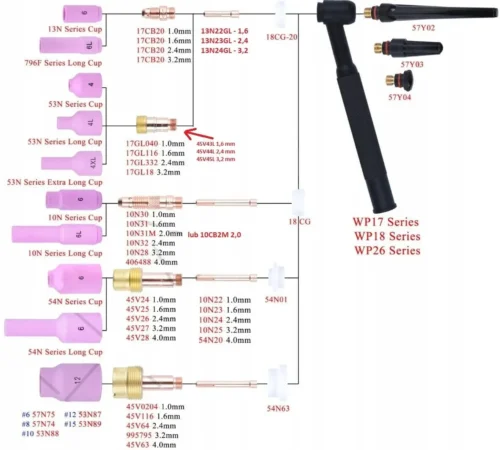 Die Keramikdüsen TIG 10N44/45/46/47/48/49/50 sind kompatibel mit TIG-Schweißhalterungen wie Binzel, Trafimet, Sherman, Magnum, usw. Dadurch können sie einfach montiert und in verschiedenen Schweißarten verwendet werden.