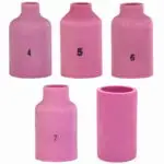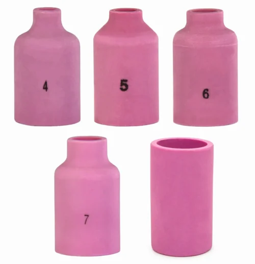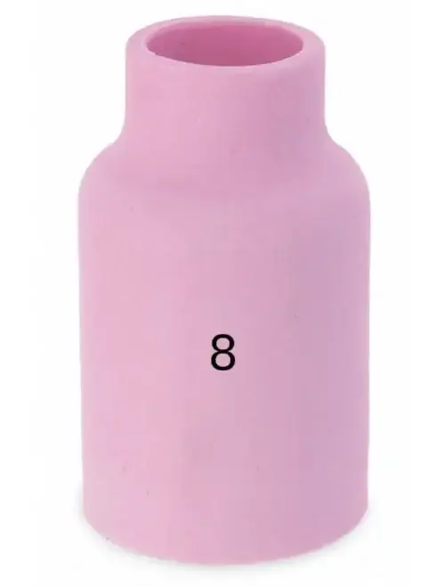 Die Keramikdüse 54N15/16/17/18/19 Nr. 4-12 SR17/18/26 ist für die TIG-Halterungen SR/WP 17 SR/WP 18 SR/WP 26 und deren Äquivalente bestimmt. Sie ist kompatibel mit TIG-Schweißhalterungen wie Binzel, Trafimet, Sherman, Magnum, usw. Die Keramikdüse ist ein unverzichtbares Element für präzises TIG-Schweißen.