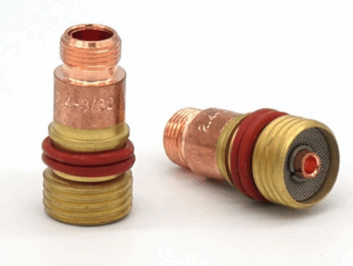 Stromverbinder mit Gaslinse (laminarer Gasverteiler), Sieb für WIG-Brenner SR17 / SR18 / SR26