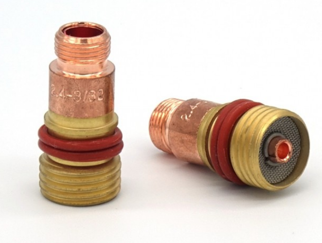 Stromverbinder mit Gaslinse (laminarer Gasverteiler), Sieb für WIG-Brenner SR17 / SR18 / SR26
