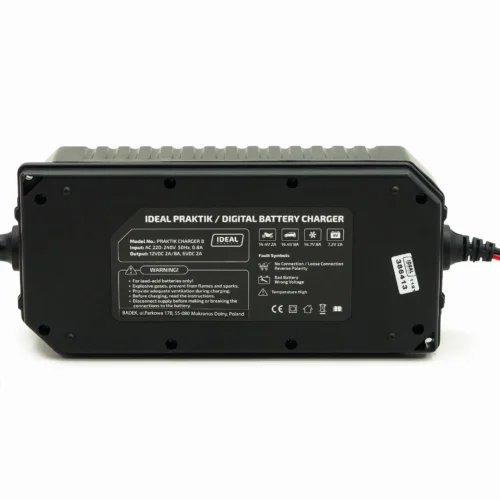 Der IDEAL PRAKTIK CHARGER 8 ist ein elektronisches Batterieladegerät zum Laden von 6- und 12-Volt-Bleiakkumulatoren. Es ist kompatibel mit Nassbatterien, Gelbatterien, wartungsfreien Batterien, AGM-Batterien und EFB-Batterien für Fahrzeuge mit Start-Stopp-System. Das Ladegerät verfügt über eine mikroprozessorgesteuerte Steuerung, die das Laden automatisch abschaltet, wenn die erforderliche Spannung auf der Batterie erreicht ist, und das Laden nach einem Spannungsabfall wieder aufnimmt.