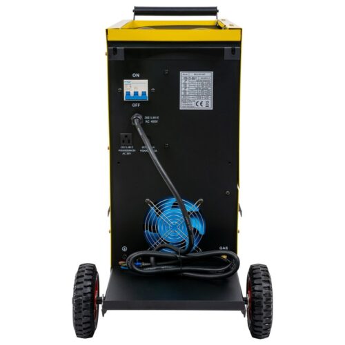 Das Gerät verfügt über eine stufenlose Einstellung der Schweißparameter und ist mit einem thermischen Überlastschutz ausgestattet, der Überhitzung verhindert. Der Schweißautomat besitzt einen professionellen 4-Rollen-Drahtvorschub mit Euro-Anschluss, der die Verbindung verschiedener Schweißbrenner ermöglicht, sowie einen Anschluss für einen Gasvorwärmer.