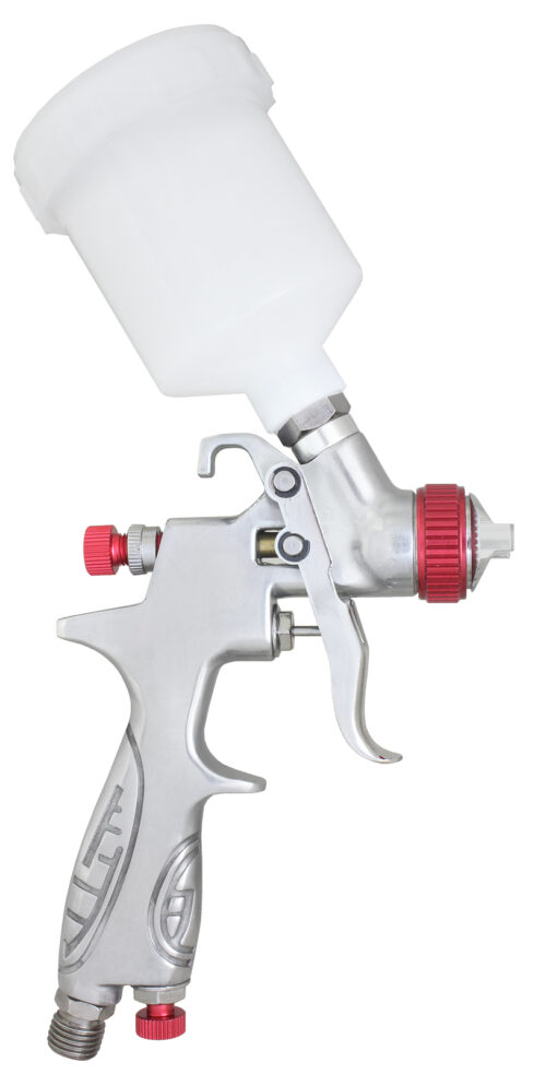 Die MINI AUARITA Lackierpistole mit 0,8-mm-Düse ist eine Spritzpistole, die im Hochdrucksystem HP (mittlerer Luftverbrauch, hoher Druck) arbeitet und mit einem Arbeitsdruck von 3 bar verwendet wird.