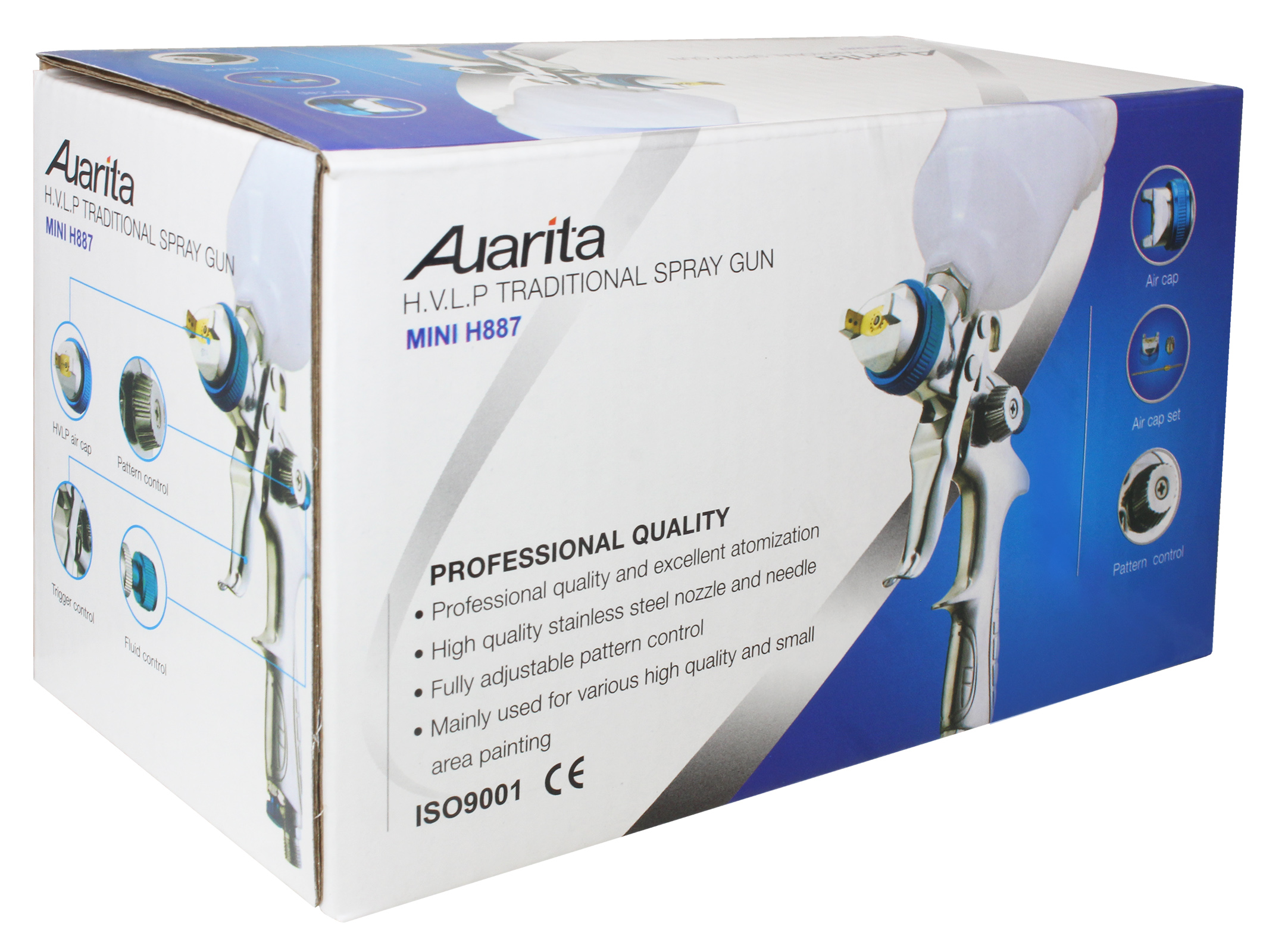 Die MINI AUARITA Lackierpistole mit 0,8-mm-Düse ist eine Spritzpistole, die im Hochdrucksystem HP (mittlerer Luftverbrauch, hoher Druck) arbeitet und mit einem Arbeitsdruck von 3 bar verwendet wird.
