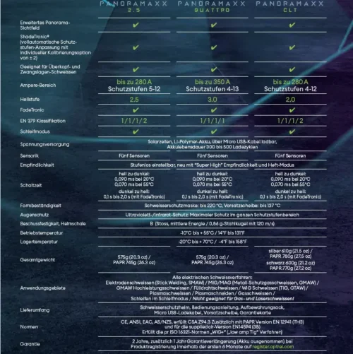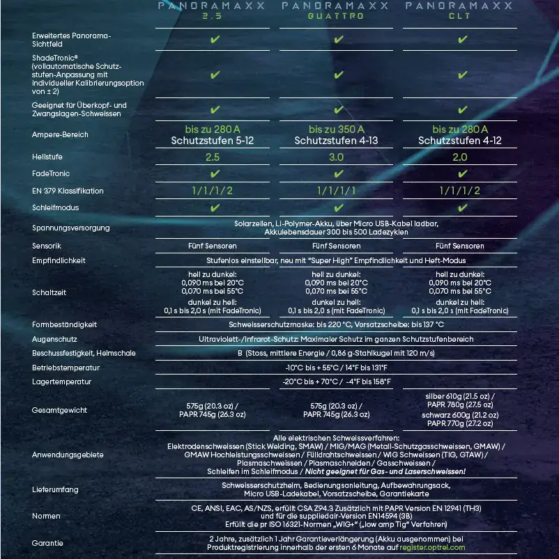 Schweisserschutzmaske: bis 220 °C, Vorsatzscheibe: bis 137 °C