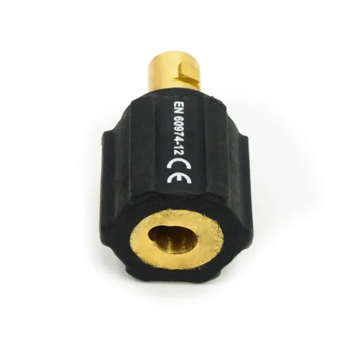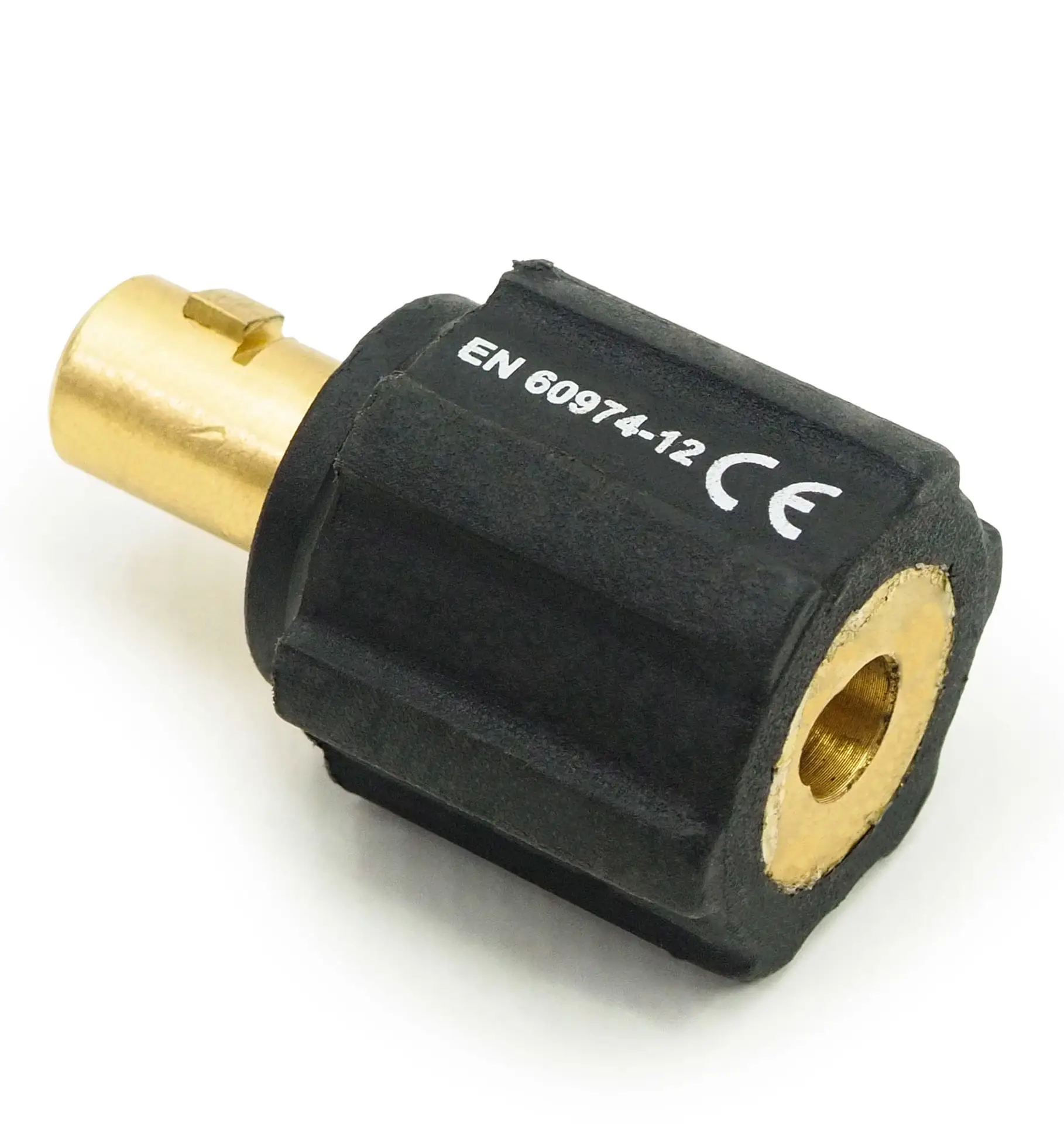 Der REDUZIERSTECKER MAGNUM EURO 50Z – 25W ist für die Reduzierung von einem Stecker mit einem Durchmesser von 9 mm (WT 25) auf einen Stecker mit einem Durchmesser von 13 mm (WT 50) vorgesehen. Dieser Adapter ermöglicht den Anschluss eines Schweißgriffs mit WT 25 Stecker an ein Gerät mit GP 50 Panelbuchse. Der Reduzierstecker ist kompatibel mit MIG, MAG, TIG und MMA Schweißgeräten. Dadurch besteht die Möglichkeit, einen Griff mit kleinem Stecker an ein Schweißgerät mit großer Buchse anzuschließen. Die Gesamtlänge des Steckers beträgt 55 mm.