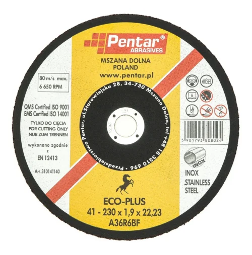 Die INOX PENTAR ECO-PLUS 41-230×1,9×22,23 A36R6BF ist eine Schneidscheibe aus der ECO-PLUS-Linie, die Schleifmittel zum Schneiden und Schleifen verschiedener Materialien bietet. Sie ist für individuelle Kunden zur allgemeinen Verwendung bestimmt. Die Schneidscheibe zeichnet sich durch ein gutes Preis-Leistungs-Verhältnis aus, was zu einer Reduzierung der Kosten für Schneid- und Schleifoperationen führt. Es handelt sich um ein polnisches Produkt.