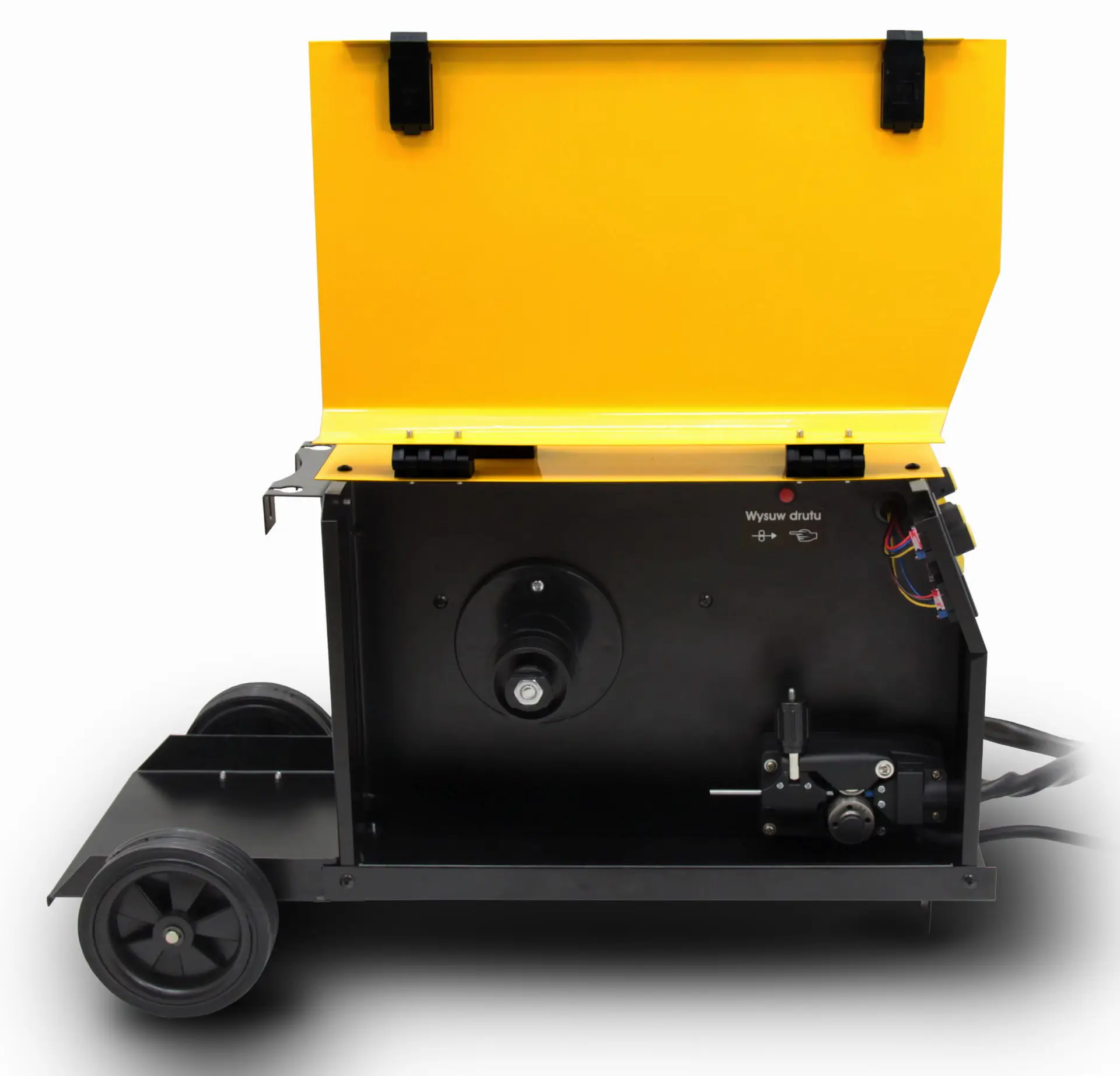 Die solide und mobile Konstruktion des MAGNUM MIG 170 W MMA IGBT Schweißgeräts aus Metall verfügt über einen Griff und einen Transportwagen, was den Transport erleichtert. Der Wagen ist mit Rädern und einem Platz für die Montage einer Schutzgasflasche ausgestattet, was den Kauf eines separaten Schweißwagens überflüssig macht. Das Gerät ist durch einen Überlastungsschutz vor Überhitzung geschützt.