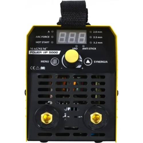 Das POWER VIP SYNERGIA 5000 Gerät von MAGNUM ist ein sehr kompaktes und leichtes Inverter-Schweißgerät mit hoher Leistung und ausgezeichneten Eigenschaften. Aufgrund seiner Charakteristik ist es ideal für Anfänger und Hobby-Schweißer geeignet. Es ermöglicht das Schweißen mit Rutil- und basischen Elektroden. Synergisch gesteuerte, stufenlose Stromregelung. Die geringe Größe und das geringe Gewicht machen das Gerät sowohl für Werkstattarbeiten als auch für Arbeiten im Freien beim Schweißen verschiedener Arten von unlegierten, niedriglegierten, hochlegierten, nichtrostenden, hitzebeständigen, Kupfer- und Gusseisenstählen geeignet.