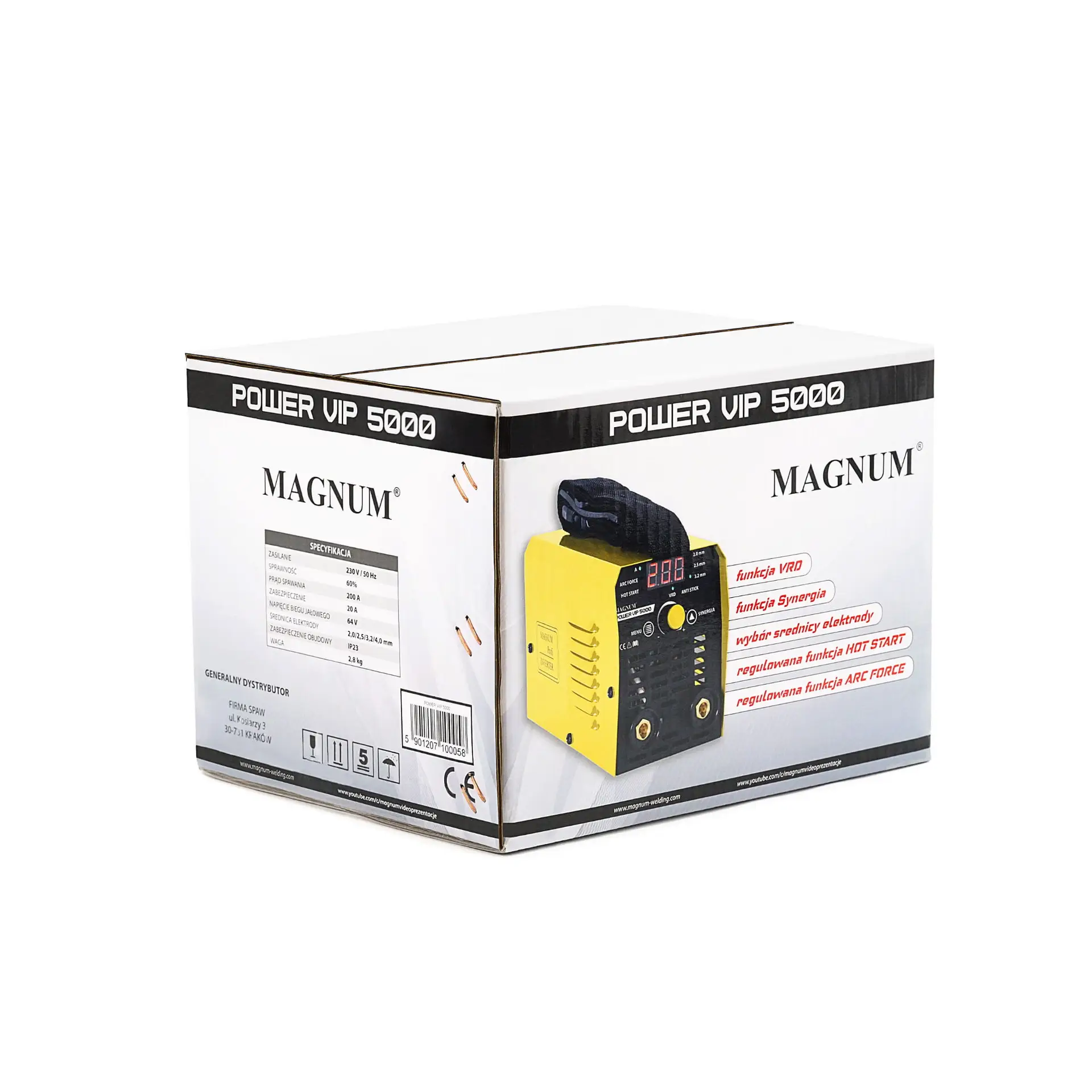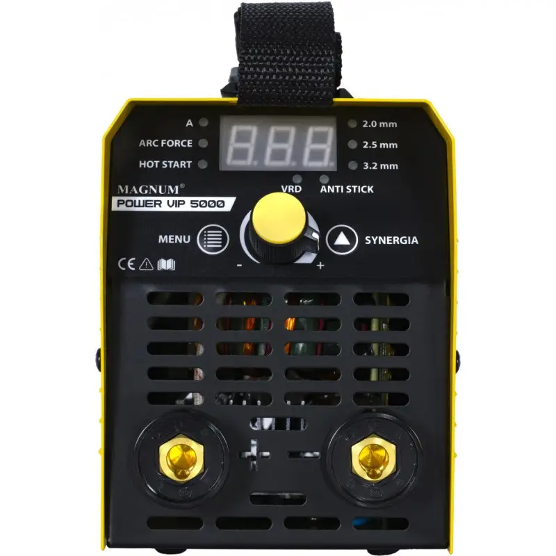 Das POWER VIP SYNERGIA 5000 Gerät von MAGNUM ist ein sehr kompaktes und leichtes Inverter-Schweißgerät mit hoher Leistung und ausgezeichneten Eigenschaften. Aufgrund seiner Charakteristik ist es ideal für Anfänger und Hobby-Schweißer geeignet. Es ermöglicht das Schweißen mit Rutil- und basischen Elektroden. Synergisch gesteuerte, stufenlose Stromregelung. Die geringe Größe und das geringe Gewicht machen das Gerät sowohl für Werkstattarbeiten als auch für Arbeiten im Freien beim Schweißen verschiedener Arten von unlegierten, niedriglegierten, hochlegierten, nichtrostenden, hitzebeständigen, Kupfer- und Gusseisenstählen geeignet.