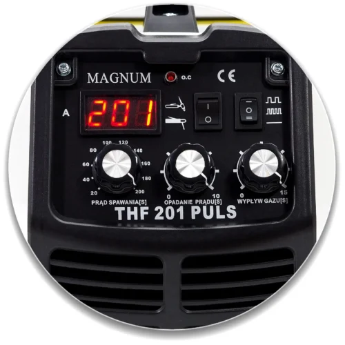 Das MAGNUM THF 201 PULS DIGITAL Schweißgerät ist ein bewährtes und anerkanntes Invertergerät auf dem Markt, das mit der IGBT-Technologie hergestellt wurde. Es handelt sich um ein einfach zu bedienendes und zuverlässiges Schweißgerät, das einen guten Ruf genießt. Es ist für das Schweißen mit Gleichstrom sowohl mit der TIG-Methode als auch mit der Elektrodenummantelung (MMA-Methode) geeignet. Das Gerät ermöglicht das Schweißen verschiedener Materialien wie Kohlenstoffstahl, Edelstahl, Nickel, Titan, sauerstofffreies Kupfer und Gusseisen. Es verfügt über eine elektronisch gesteuerte stufenlose Stromregelung. Es wird einphasig mit einer Spannung von 230V betrieben. Im Lieferumfang enthalten sind das MAGNUM THF 201 PULS Schweißgerät, ein 4m langer TIG-Schweißbrenner SR-26, ein 3m langer MMA-Elektrodenhalter, ein 3m langes Massekabel mit Klemme, ein Satz Verschleißteile für den Brenner und eine Bedienungsanleitung in polnischer Sprache.
