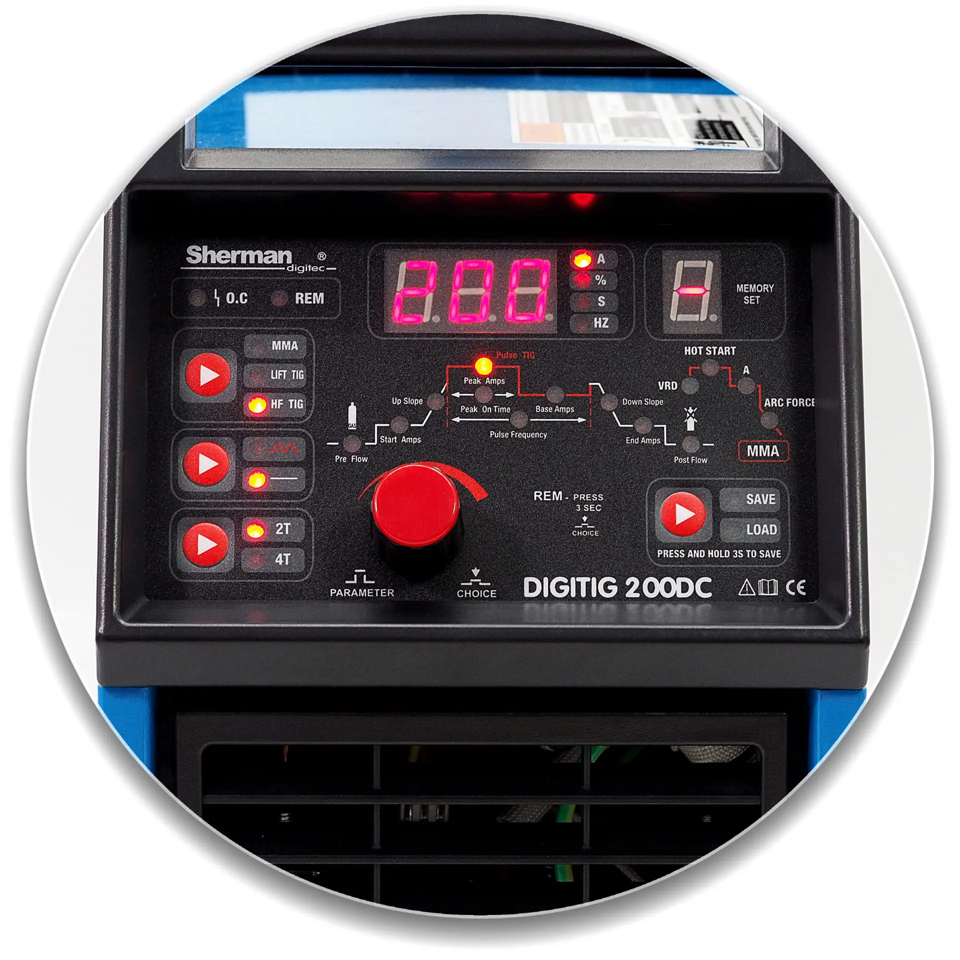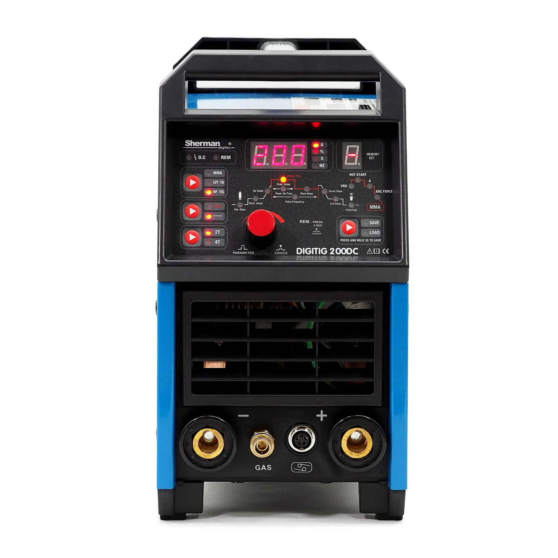 Das Sherman DIGITIG 200 DC Inverter-Schweißgerät ist das günstigste Gerät mit Speicherkanälen auf dem Markt. Es ist klein, aber hat hervorragende Schweißparameter. Es kann zum Schweißen mit der TIG DC- und MMA-Methode bei einem maximalen Strom von 200A verwendet werden. Das Gerät wird mit einer Spannung von 230V betrieben. Das DIGITIG 200DC Schweißgerät ist ein digital gesteuertes Gerät der neuesten Generation der IGBT-Technologie für professionelle Anwendungen. Es verfügt über erweiterte Optionen zum Schweißen mit der MMA-Methode sowie TIG HF und TIG LIFT.