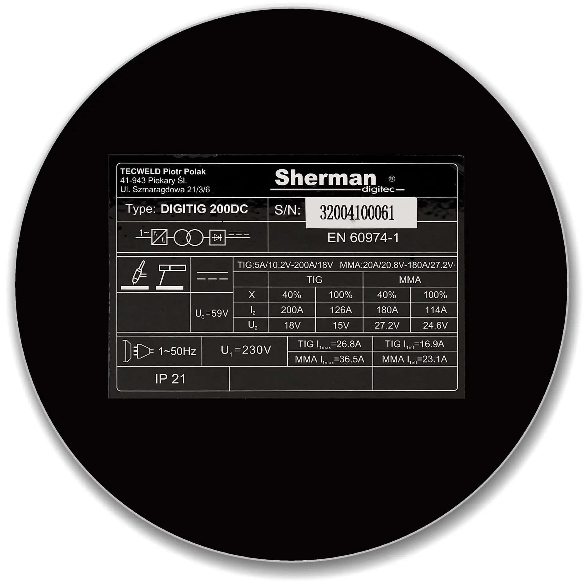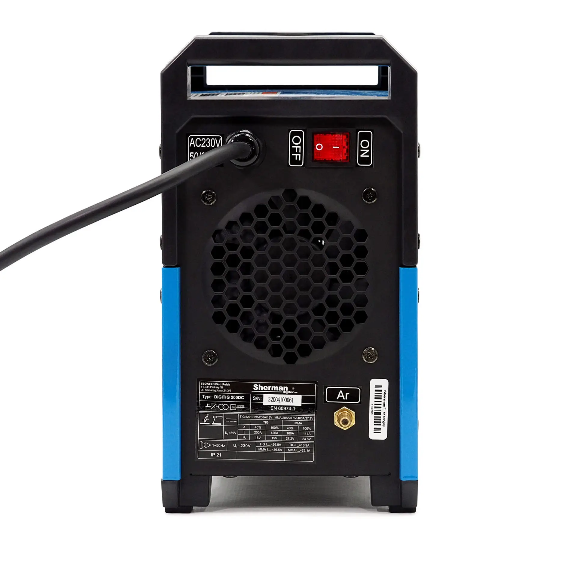 - MMA-Schweißstrom: 180A, TIG: 200A