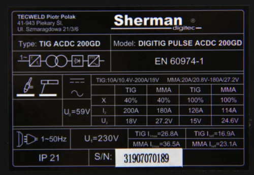 Schweißgerät Sherman DIGITIG AC DC200 GD PULS TURBO