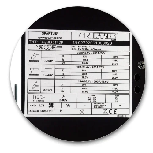 Die SPARTUS EasyMIG 217 DP ist ein modernes, invertorisiertes Schweißgerät, das auf IGBT-Transistoren basiert. Es verfügt über synergistische Programme, die das Schweißen mit doppelter Pulsation, das Schweißen mit Pulsation, das Schweißen im synergistischen Modus, das Schweißen im manuellen Modus, das TIG-Lift-Schweißen und das MMA-Schweißen mit umhüllter Elektrode ermöglichen. Darüber hinaus ermöglicht es durch die Möglichkeit der Änderung der Polarität des Schweißens das Schweißen mit selbstschützendem Draht ohne Gas.
