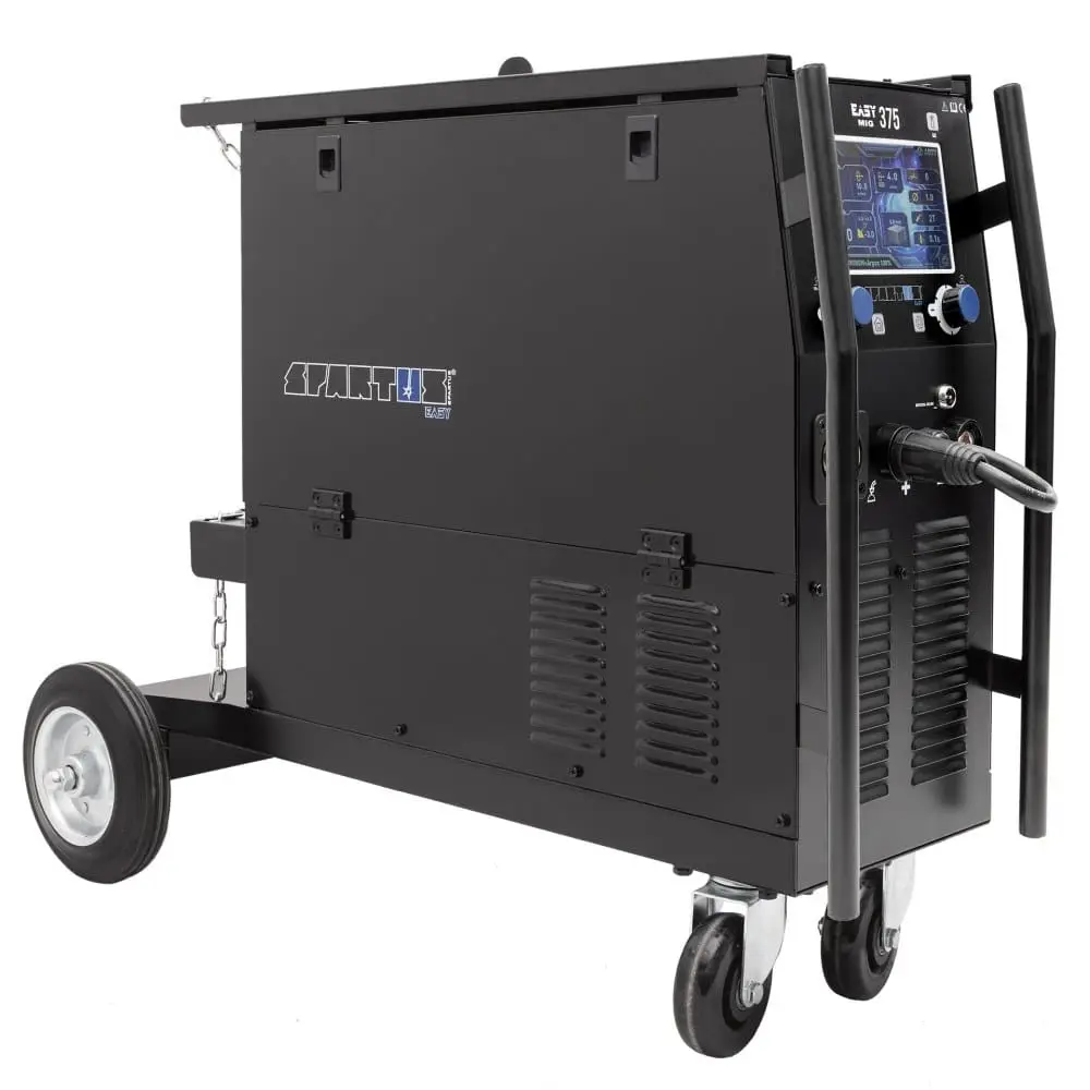 Die SPARTUS EasyMIG 375 ist ein professionelles Gerät mit solider Konstruktion, das eine hohe Schweißqualität gewährleistet. Es eignet sich ideal für den Einsatz in der Leichtindustrie, für Feldreparaturen, Werkstattarbeiten, Automobilindustrie und Schweißen von Auspuffanlagen. Dank des modernen LCD-Displays können die Schweißstromspannung leicht eingestellt und die Gerätefunktionen verwaltet werden. Der EURO-Griff ermöglicht eine einfache und schnelle Demontage oder Austausch des Griffs. Das Schweißgerät ist auch kompatibel mit Standard-Drahtspulen D200 und D300 mit einem Gewicht von bis zu 15kg.