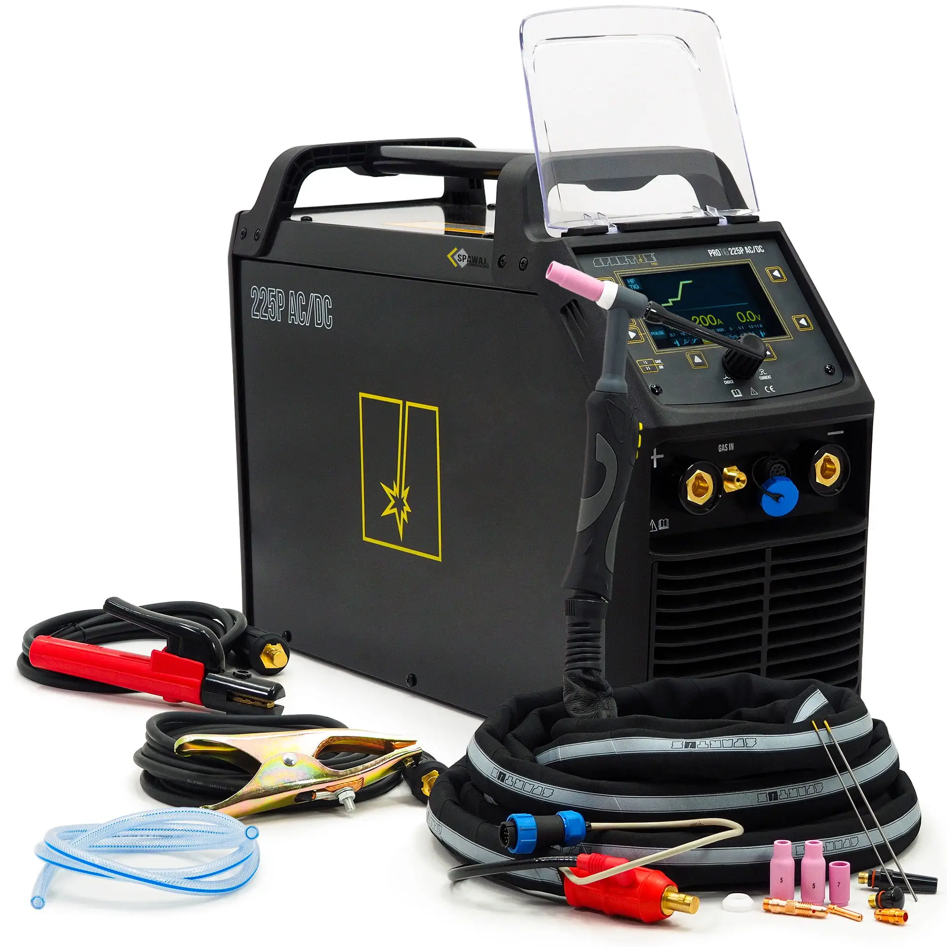 Die SPARTUS ProTIG 225P AC/DC ist ein modernes Inverter-Schweißgerät, das das Schweißen mit der TIG AC/DC- und MMA AC/DC-Methode ermöglicht. Es wird von einem einphasigen Netz mit einer Spannung von 230V betrieben. Das Schweißgerät ist mit einer Pulsstromschweißfunktion ausgestattet, die es ideal für das Schweißen von dünnen Blechen und Aluminium macht. Es handelt sich um ein professionelles Gerät der SPARTUS Pro-Linie, das eine 3-jährige Garantie hat.