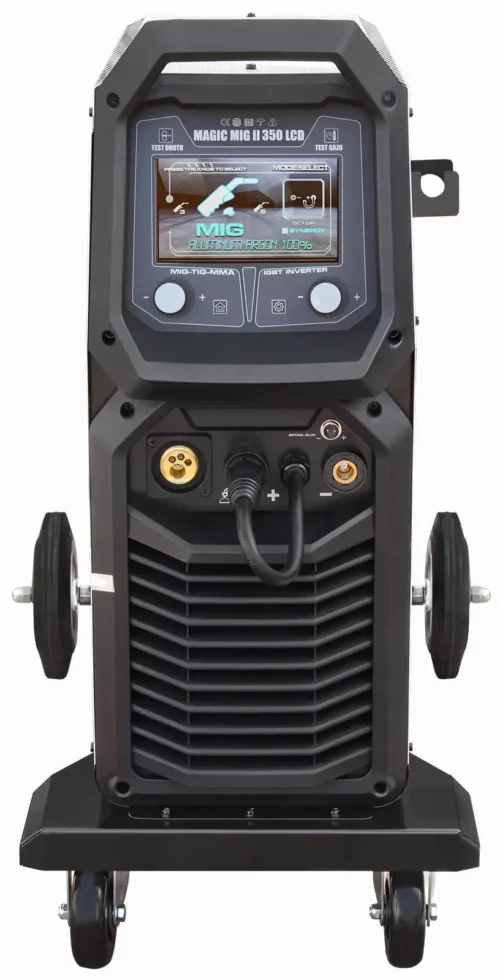 Das Schweißgerät Welder Fantasy MAGIC MIG II 350 LCD 4×4 ist eine moderne, synergische Inverter-Stromquelle, die viele Möglichkeiten beim Schweißen bietet. Es handelt sich um ein multifunktionales, invertergesteuertes Schutzgas-Schweißgerät mit 4-Rollen-Drahtvorschub. Das Gerät ist für das manuelle Lichtbogenschweißen von Metallen und Metalllegierungen mit den Verfahren MIG/MAG, FCAW, TIG DC lift und MMA geeignet. Das Schweißgerät ist zuverlässig, solide verarbeitet und eignet sich ideal für professionelle Schweißarbeiten in verschiedenen Industriezweigen.