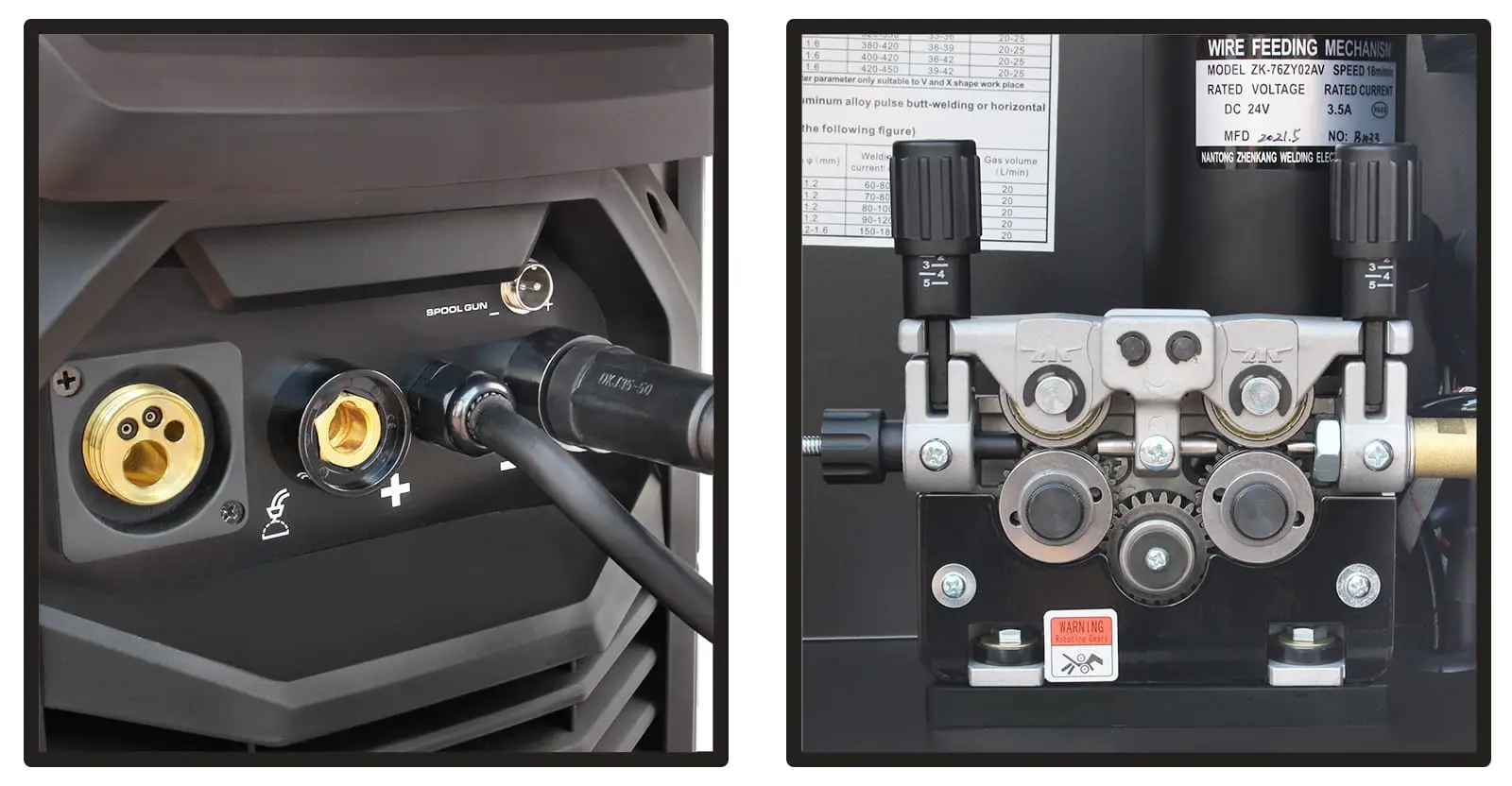 - Möglichkeit zur Ausstattung mit einem Drahtvorschubgriff (Spool Gun)